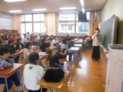 クリスマスにまつわるお話を読んでいただきました。子供たちは物語の内容に興味津々の様子でした。