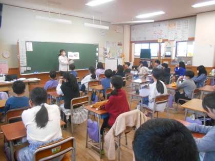 クリスマスにまつわるお話を読んでいただきました。子供たちは物語の内容に興味津々の様子でした。