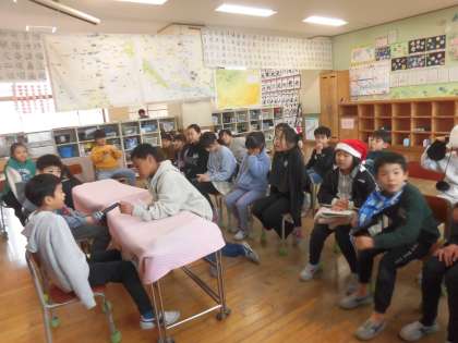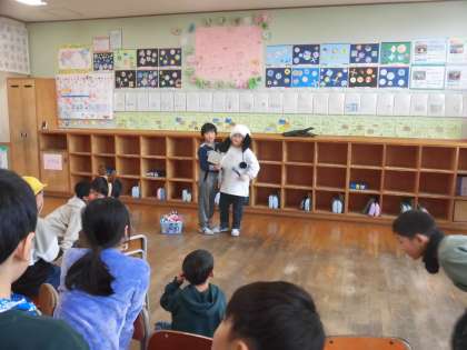 今日は、お誕生日会とクリスマス会が開かれました。各グループが、クイズやゲーム等の出し物をしました。サンタやトナカイの装いをした子供たちの姿も見られました。
