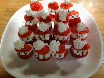 今日はクリスマスなのでいちごのサンタを作りました。いろんな形や目のサンタがいて面白いです。