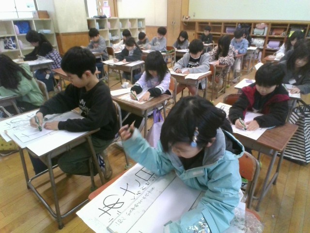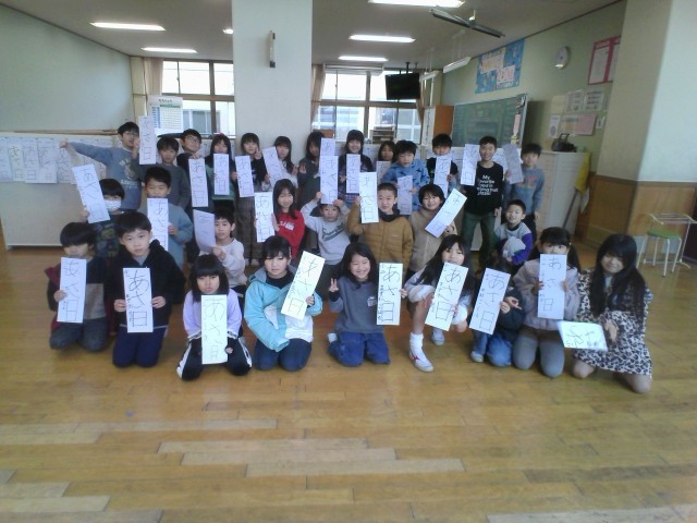 書初大会では、「あさ日」を一画一画丁寧に書き上げました。冬休み中の練習の成果が発揮されていたと思います。とても良い字が書けましたね。