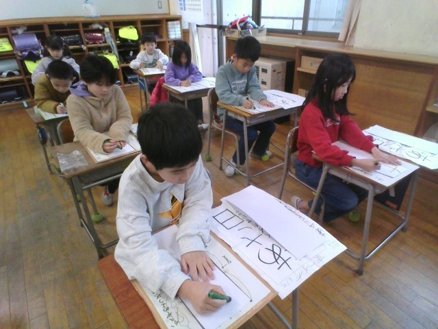 書初大会では、「あさ日」を一画一画丁寧に書き上げました。冬休み中の練習の成果が発揮されていたと思います。とても良い字が書けましたね。