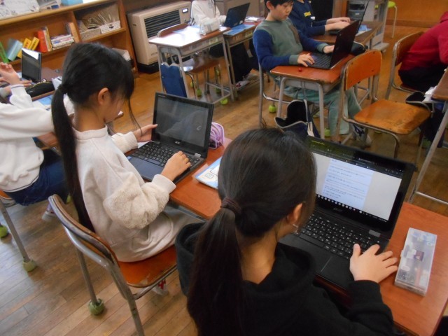 配付されたPCのアンケートをつかって、自分たちの言語環境を見つめなおしていました。