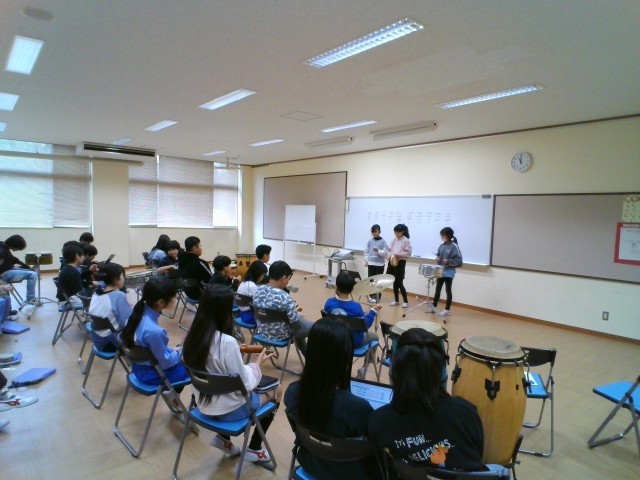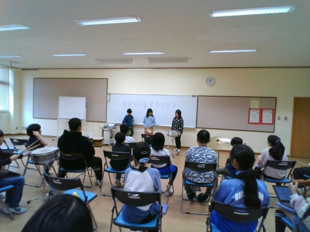 12月から練習していた打楽器アンサンブルの発表会をしました。タイミングを合わせたり、強弱に気をつけたりしながら発表することができました。
