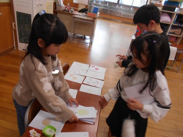 学習したことをもとに、今日はお店屋さんを開きました。子供たちは準備の段階から楽しんで学習しており、今日のお店屋さんをとても楽しみにしていました。