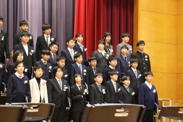 前日の雨がうそのようないい天気の中、73名の6年生の卒業式が行われました。