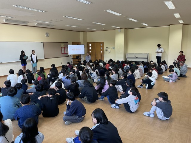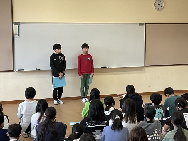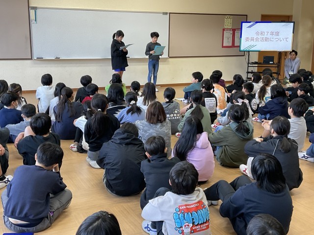 6年生から5年生に向けて、各委員会の委員長や副委員長から昨年度までの取組や今年度への思いについての話がありました。学校を引っ張っていく高学年としての活躍を期待しています。