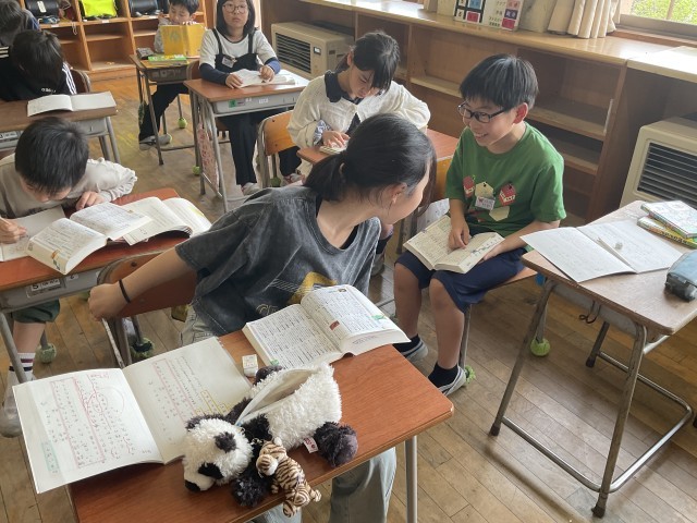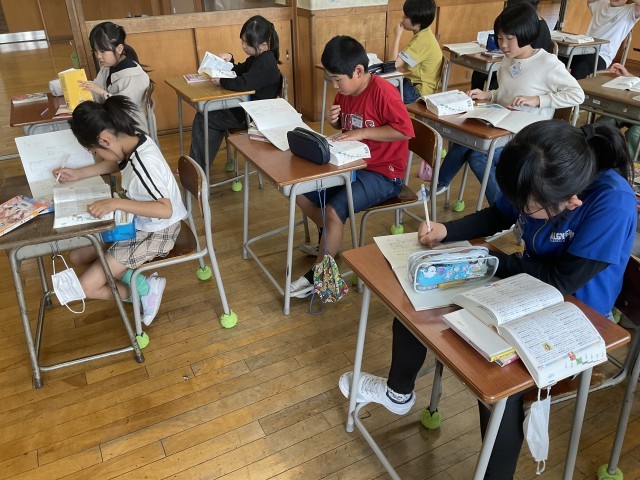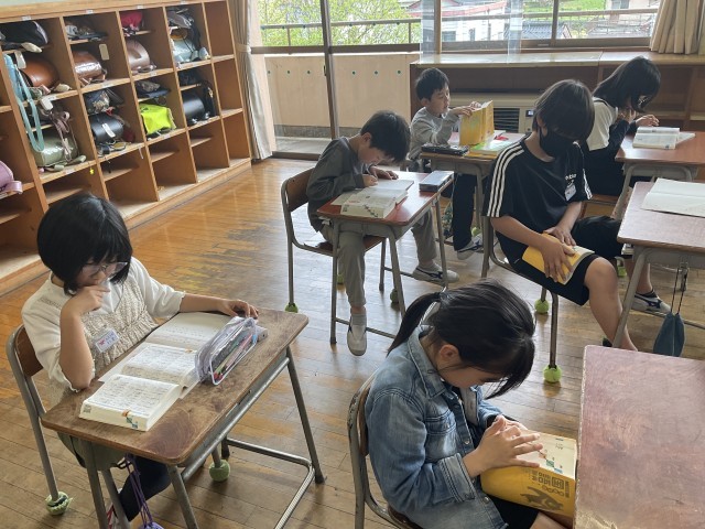 教科書の物語を読んで、意味が分からない言葉や表現について国語辞典で調べています。