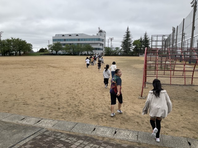 4年生教室からグラウンドへ避難するルートの確認をしました。