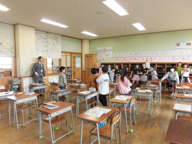 今日の外国語活動の様子です。外国語の先生に「Do you like ~?」と聞かれ、「Yes」であれば〇の場所へ、「No」であれば×の場所に移動するゲームに取り組みました。