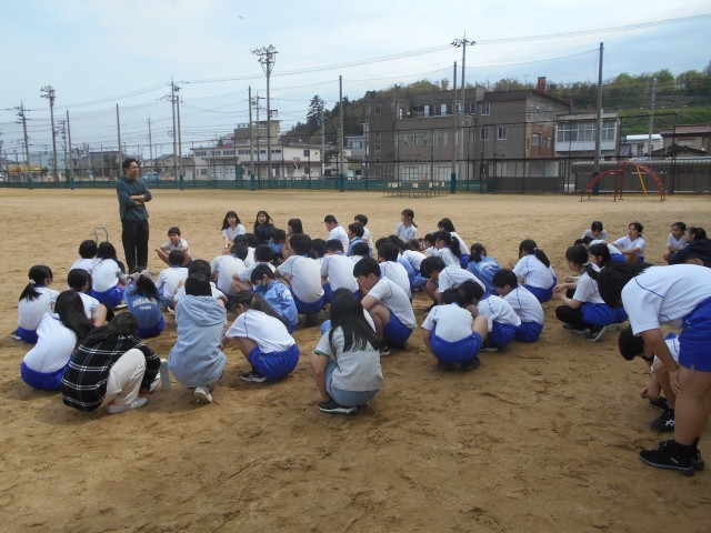 4月になって、1回目の50mのタイムを計測しました。自己記録を更新した人や、いい走りができたと喜んでいる人が多く、体育の授業の走力アップメニューの効果が表れてきているみたいです。これから、運動会に向けて更にやる気や自信をつけていってほしいと思っています。