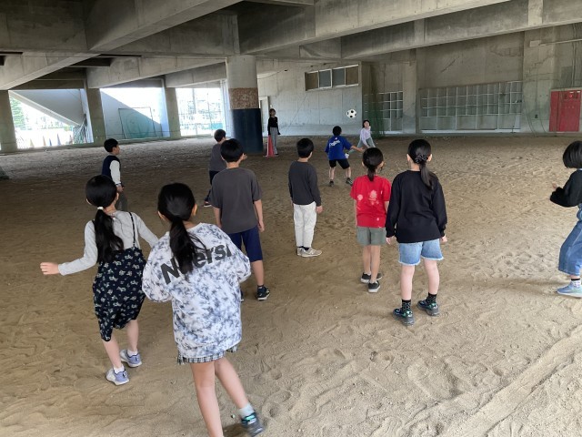 運動係主催のイベント。くじ引きで2チームに分かれ、ドッジボールをしました。