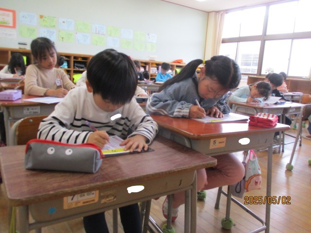 書き順や形などに気をつけながらみんなで集中して取り組みました。