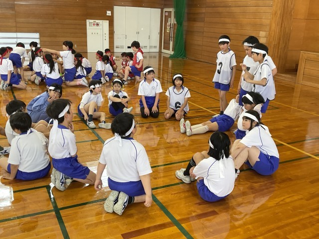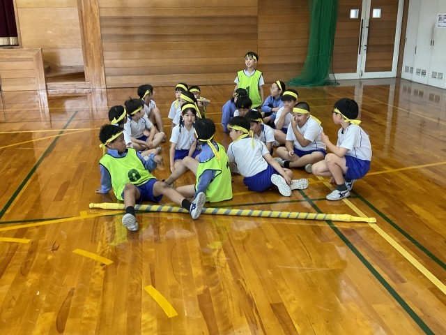 運動会の練習が始まりました。今日は、中学年競技の練習をまず4年生だけで行いました。次回、3年生に教えられるようにうまくやるコツを話し合っていました。