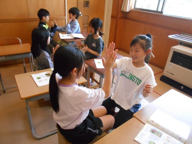 音楽では、茶つみを学習しています。今日は茶つみの音楽のリズムに合わせてペアで手拍子を打ち合いました。途中でペアを変えながら活動しました。子供たちは楽しそうに活動していました。