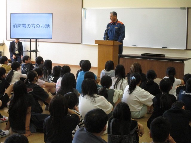 今日は、BFCバッジ授与式がありました。子供たちは、消防署の方の話を真剣に聞き、BFCの一員になりました。学んだことを、家族や地域の方に伝えられるとよいですね。