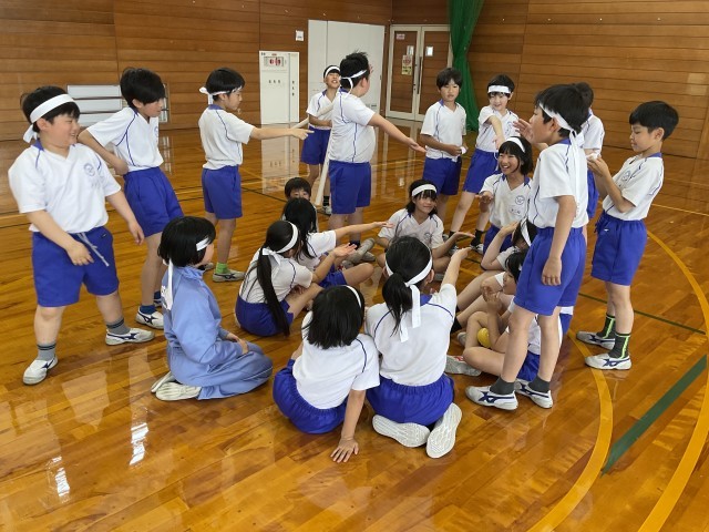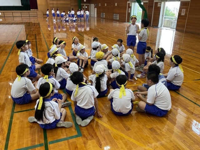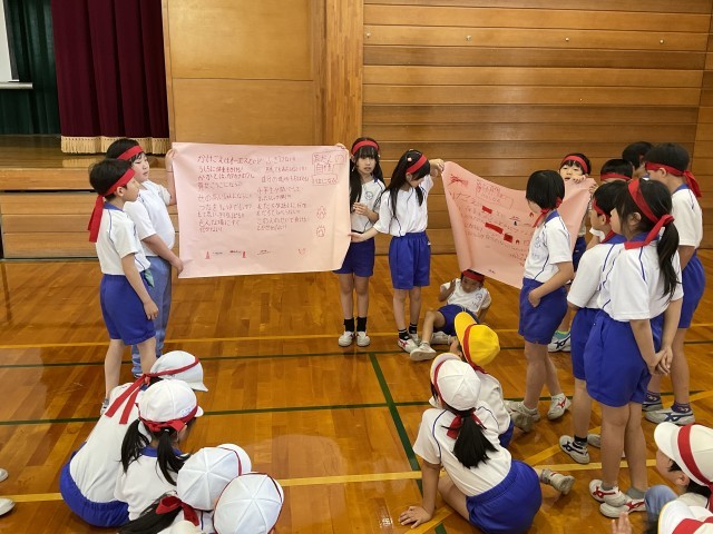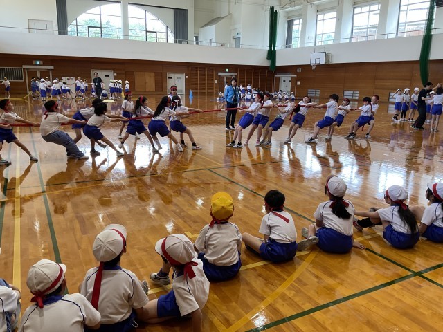 3年生と綱引きの練習をしました。各団、4年生から声のかけ方や綱の引き方、体勢など調べてきたことを伝えたり実際にやってみたりしました。