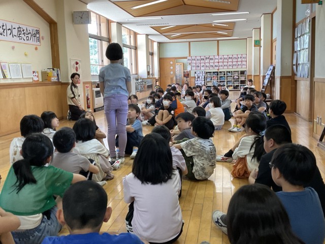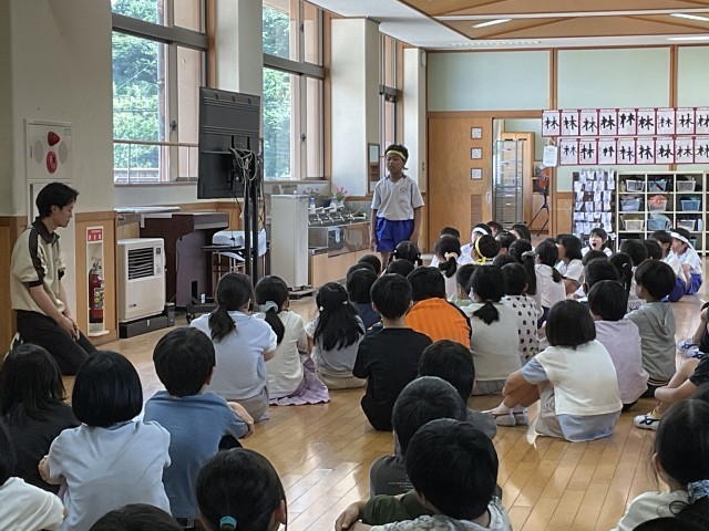 火災を想定した避難訓練がありました。振り返りでは、なぜ「お・は・し・も」を守らなければならないのかについて、自分の考えを伝え合っていました。