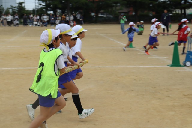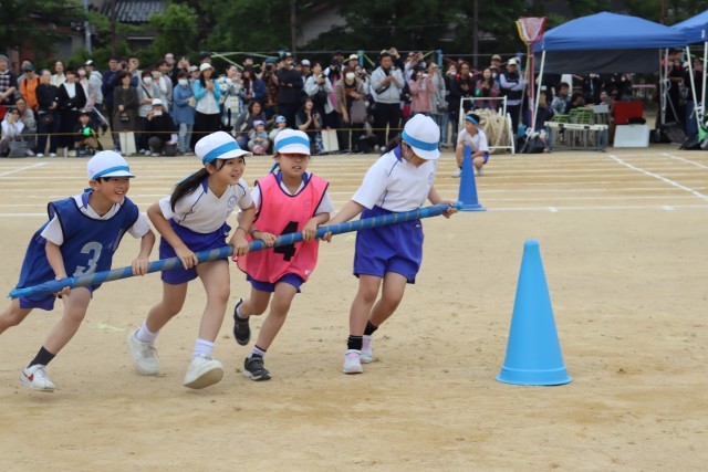 3・4年生の学年種目の「風の子タイフーン」の様子です。これまで練習してきた成果を発揮しようと、がんばりました。4人で息を合わせながら走る姿が印象的でした。