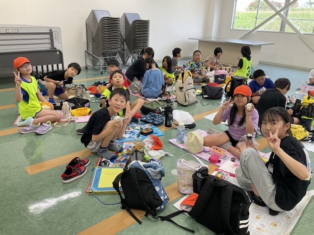 今朝、最初に会った子供たちが話していたことは、「今日のお弁当、楽しみだなー」でした。午前中の見学が終わり、昼食の時間になりました。レジャーシートを広げて、楽しみにしていたお弁当を食べています。