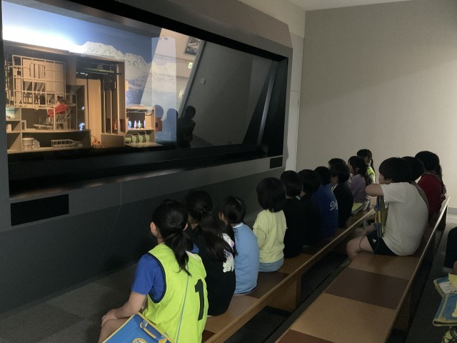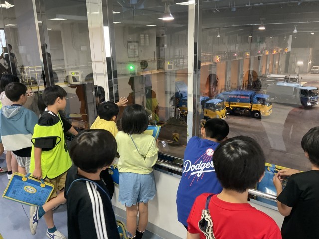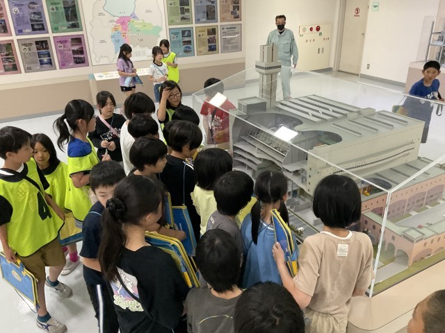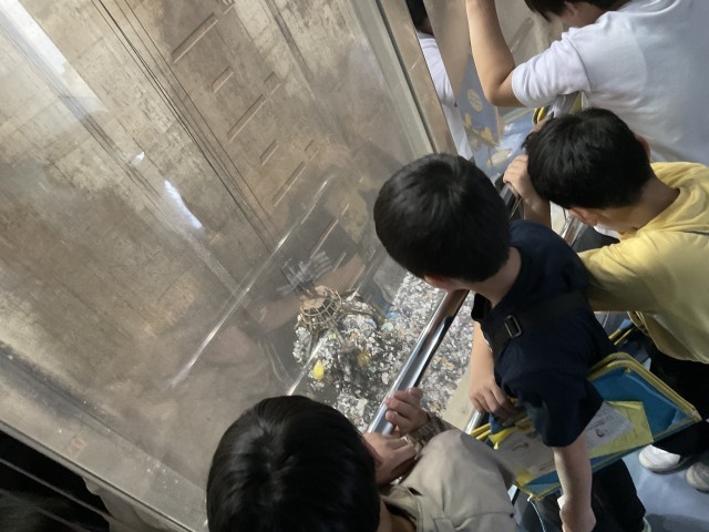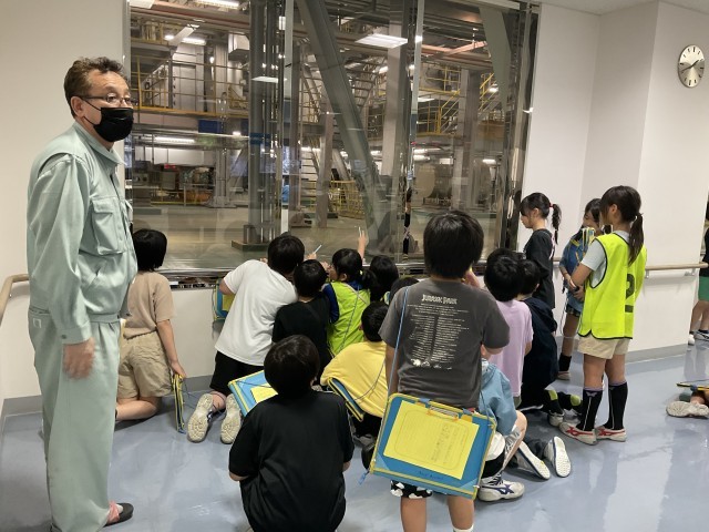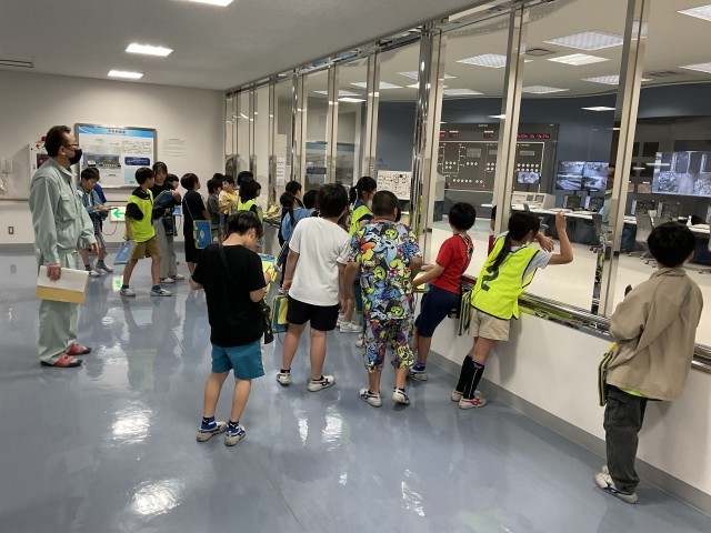 クリーンセンター内を3グループに分かれて見学しました。制御室や発電機室、ごみピット等を近くで見せてもらいました。
