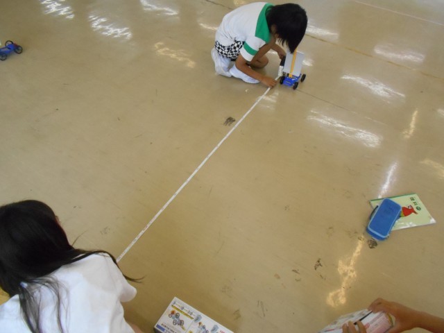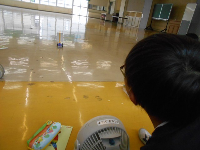 理科では、風の力で動く車を使って実験をしました。送風機の風の強さが、弱のときと強のときの車が進む距離を測りました。どれくらい違いがあったのでしょうか。またお子さんに聞いてみてください。