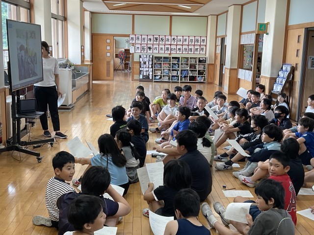 今朝は学年で集まり、7月の宿泊学習に向けて、活動内容や服装、持ち物等についての話をしました。本日、お知らせを配付しましたので、ご家庭で確認や準備をお願いします。