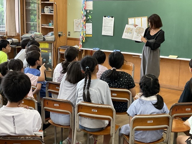 今朝は、六葉会の方による読み聞かせがありました。子供たちは真剣な様子で話を聞いていました。