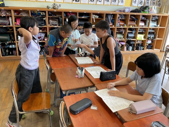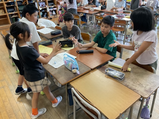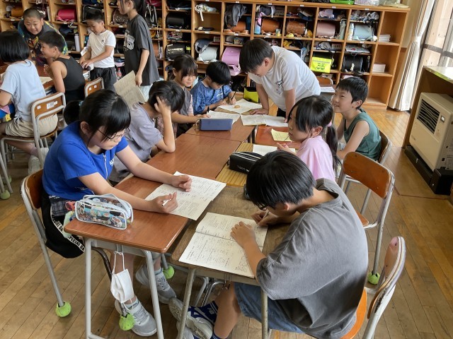 明日から、宿泊学習へ出かけます。グループごとに、活動の最終確認をしています。