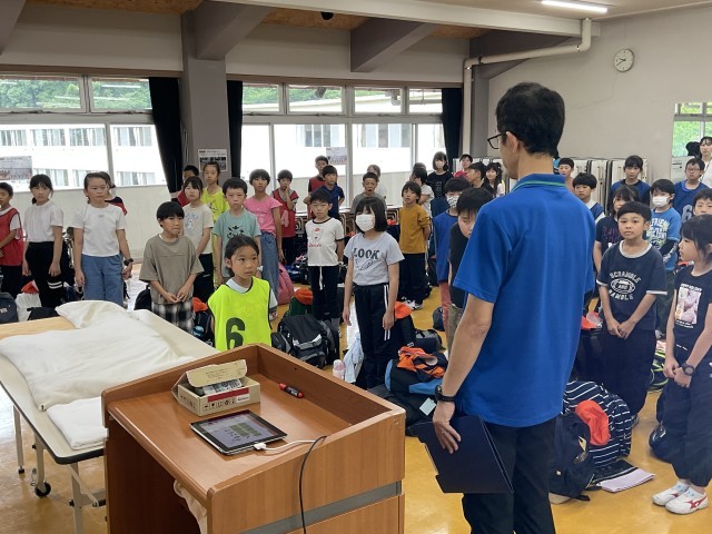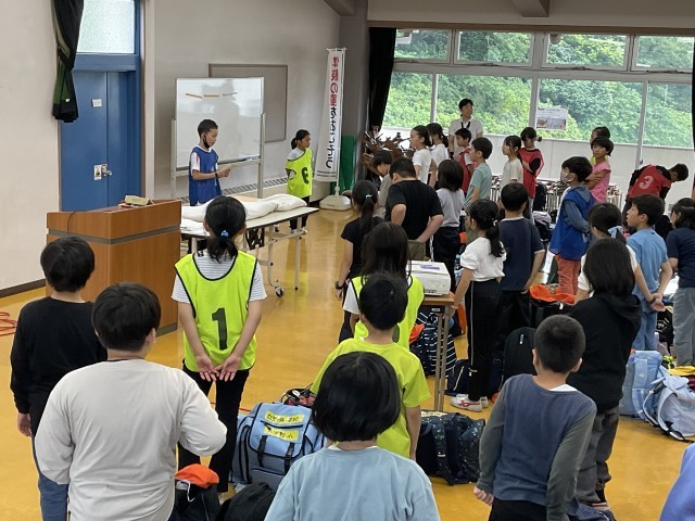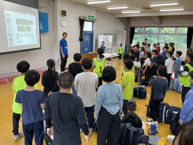 呉羽青少年自然の家に到着しました。入所式の様子です。