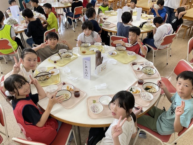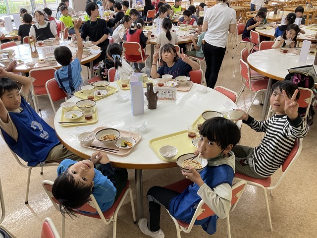 今日の昼食は、うどんでした。午前中に動き回って、みんな腹ペコのようでした。
