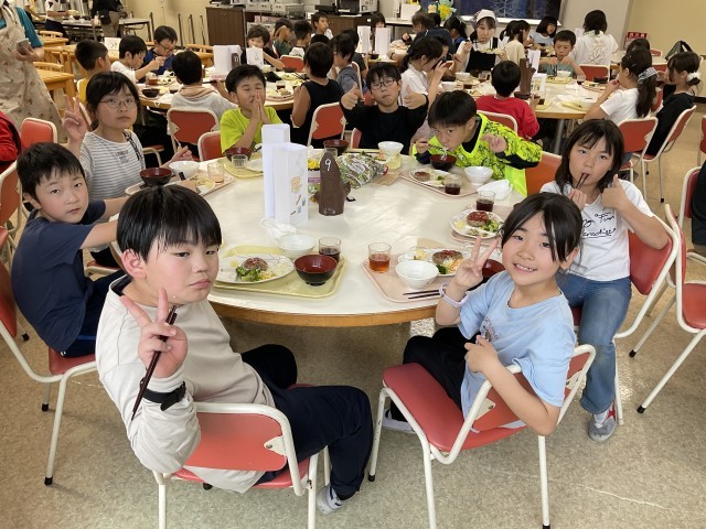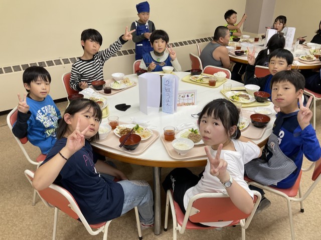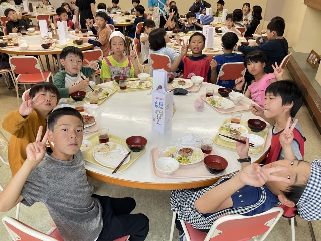 夕食の時間になりました。午後も元気いっぱいに活動した子たちは、おいしそうに食べ進めていました。