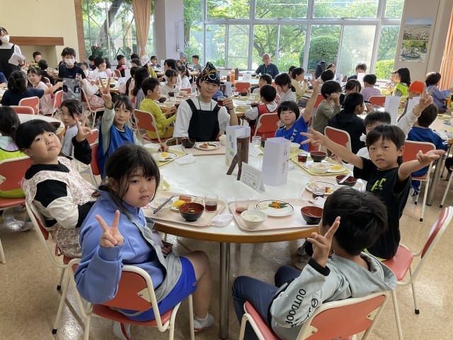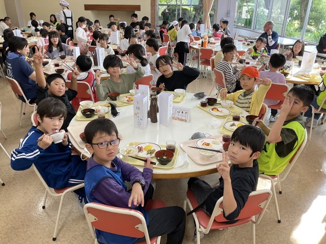 朝食の様子です。午前中の活動に備えて、ご飯や汁物をおかわりする子もいました。