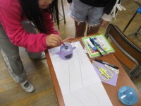 図工では、金づちを使って木材に釘をたくさん打つ活動を行っています。木材の組み合わ...