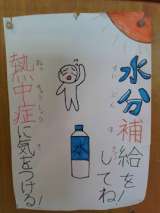 2年生の教室のちかくのはしらに、ねっちゅうしょうのかみが、はってあります。 あし...