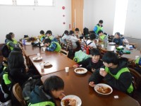 昼食の様子です。午前中の活動でエネルギーをたくさん使った子供たちでしたが、カレーライスを食べ、午後の活動のエネルギーを補給しました。