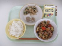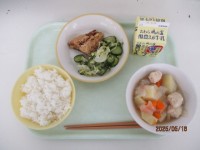 今日の給食は、コッペパン、ポークフリッター、ひよこ豆のサラダ、野菜のトマトスープ煮です。今日は、子供たちが好きな献立の1つである、ポークフリッターです。塩こしょうで下味をつけた豚肉に、小麦粉、ベーキ...