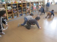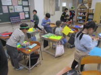 今日は、図工の時間にわっかを使って変身しました。頭の被り物を作ったり、ベルトや腕輪を作ったりして、みんなとても楽しそうに活動していました。