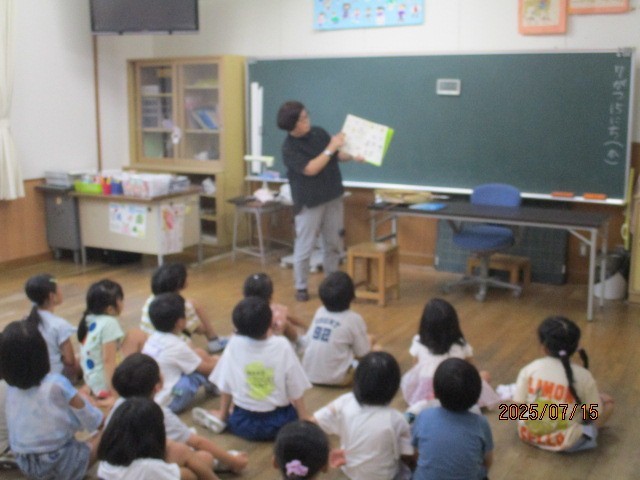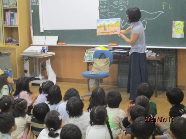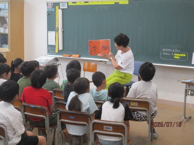 今朝は、1・2年教室を中心に、読み聞かせをしていただきました。