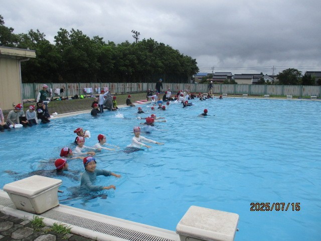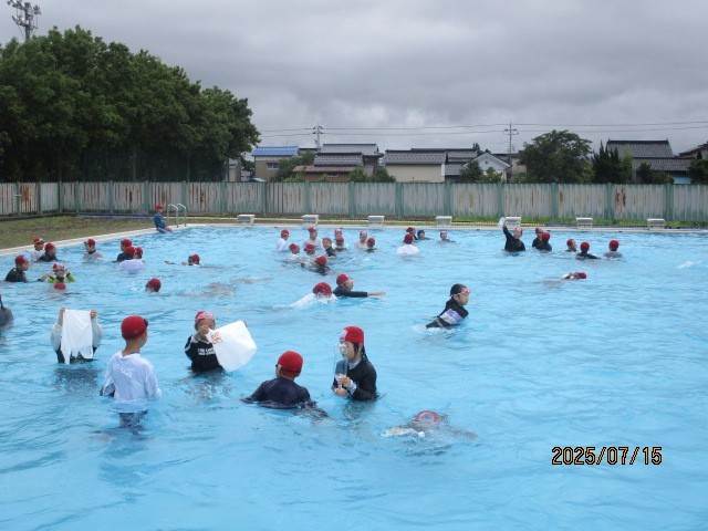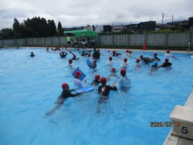 夏休みに入る前の時期、着衣泳を体験して、水の事故からの予防や、落ち着いて対応するための動きについて確認しました。
