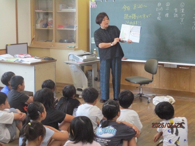 1学期最後の読み聞かせボランティアとなりました。今日も子供たちは絵本の中に引き込まれています。