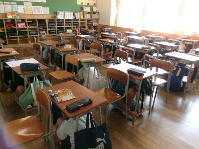 9月1日(月) 6年生 シェイクアウト訓練 公開日 2025/09/02 更新日 2025/09/01 6年生 本日9月1日は「防災の日」です。地震発生を想定したシェイクアウト訓練を行いました。姿勢を低く・頭を守り・動かないの3つの安全行動を意識して取り組みました。