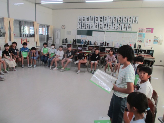 1学期に調べた環境問題について分かったことを発表し合いました。「小さな積み重ねが環境問題を進める。」「今からでも、一つでも自分たちにできることをしていくのが大切」と発言した子供がいました。私たちに何ができるでしょうか。考えていきましょう。