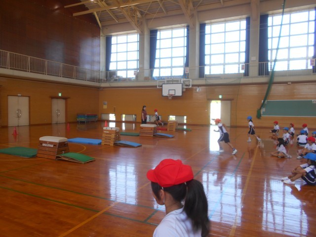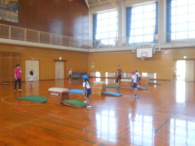 ロイター板でジャンプする、手をしっかり付く、前を見るなどに気を付けて取り組んだことで、跳べる子供たちが増えてきました。