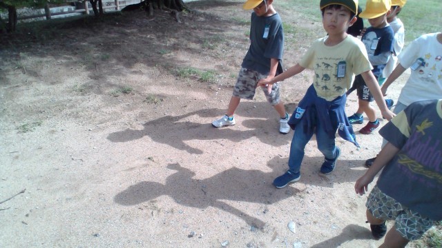 みんなの影の向きが揃っていることや影で不思議な形をつくり、自身の影を楽しんでいました。