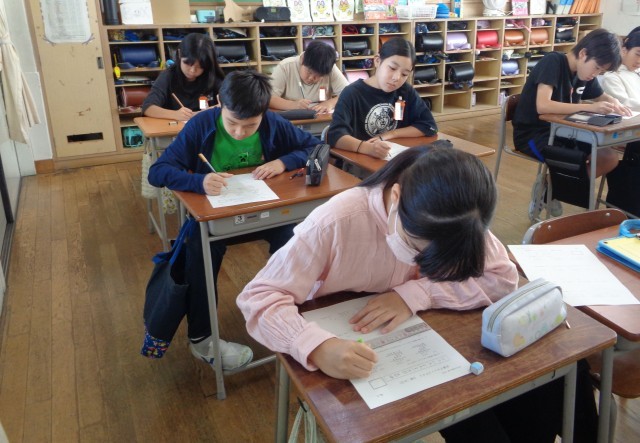 6年生の算数科の学習の様子です。今日は、計算チャレンジテストの練習をしました。4年生の計算問題に「簡単だ!」「計算間違えた」などの声が聞こえました。