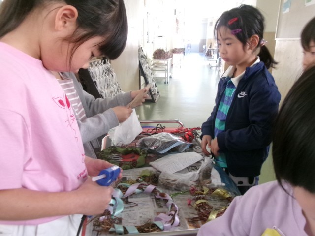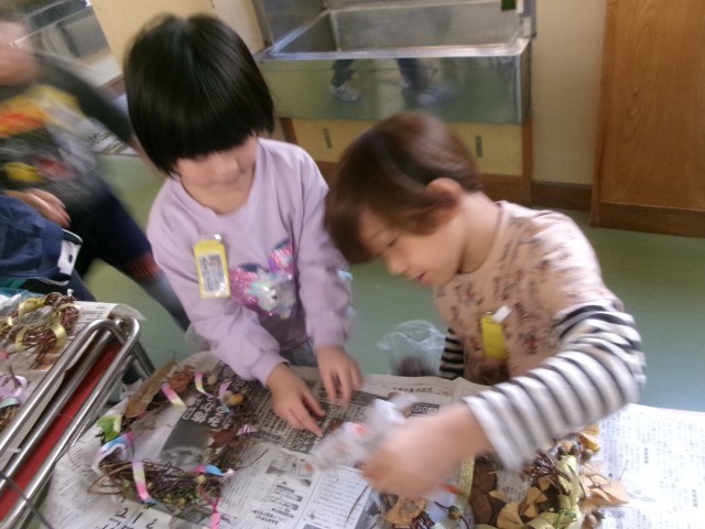 どんぐりや松ぼっくりで素敵なリースが出来上がりました。