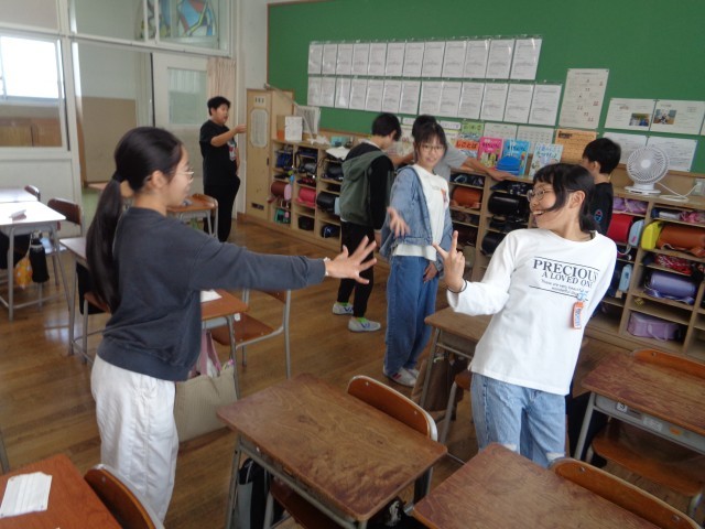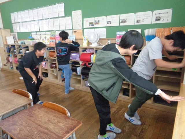 6年生の昼休みの様子です。階段でグリコをするのは、通行を妨げるため教室の床の板目を使いました。全員でやるとじゃんけんが決まらなかったため、分かれてやろうという声かけがありました。楽しそうな声が聞こえてきました。