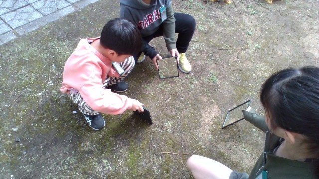 鏡を使って、光の進み方を観察しました。