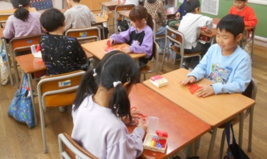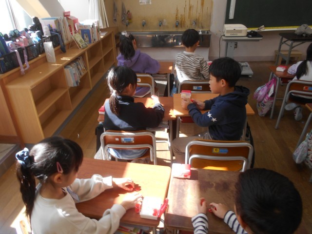 ペアで問題を出し合い、素早く式を言ったり、おはじきで表したりしていました。